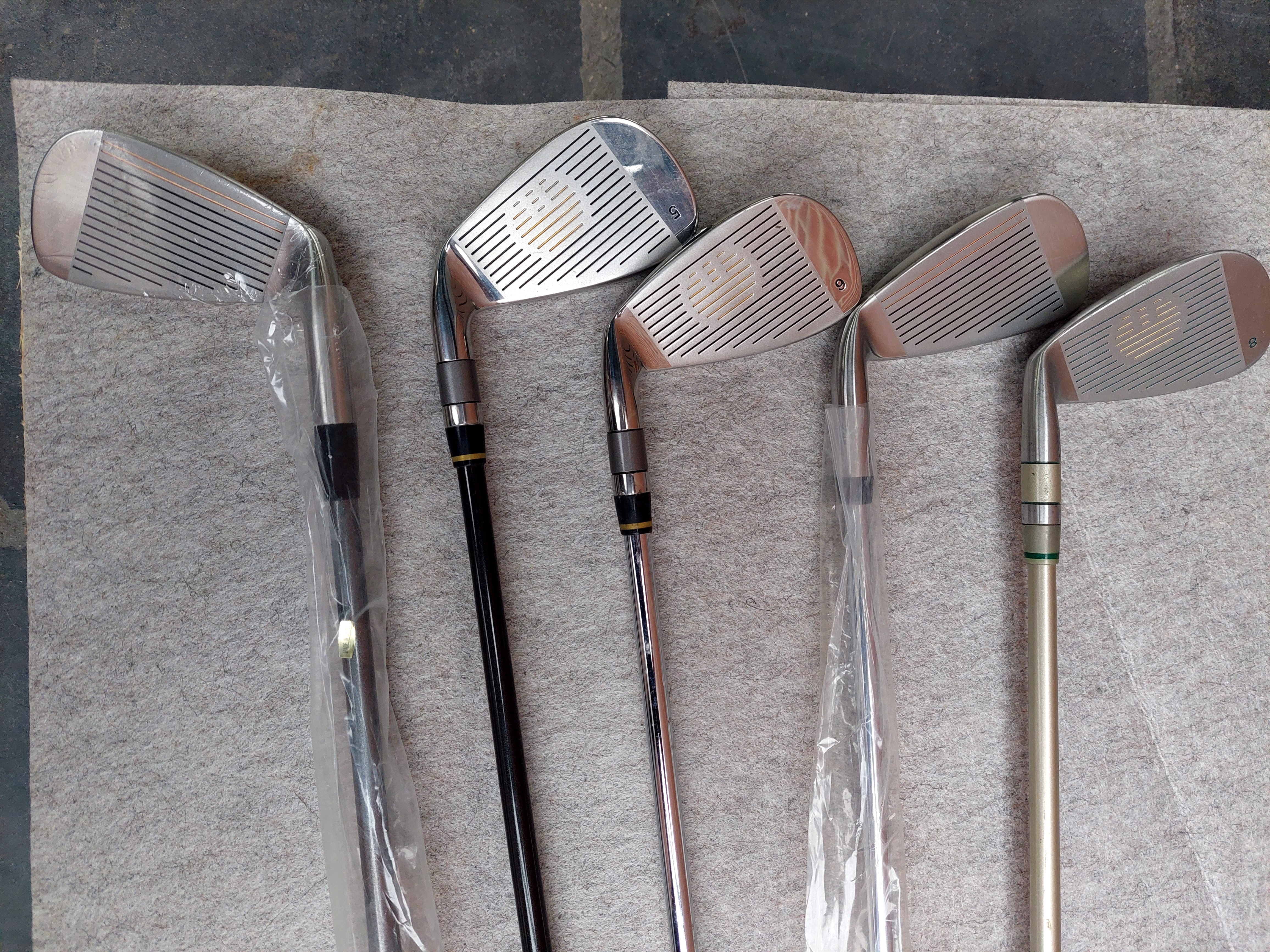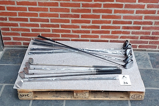 #26 10 stk Køller og jern. Heraf 5 køller og 5 jern (5, 6, 7, 8, 7venstre ) ubrugte.
