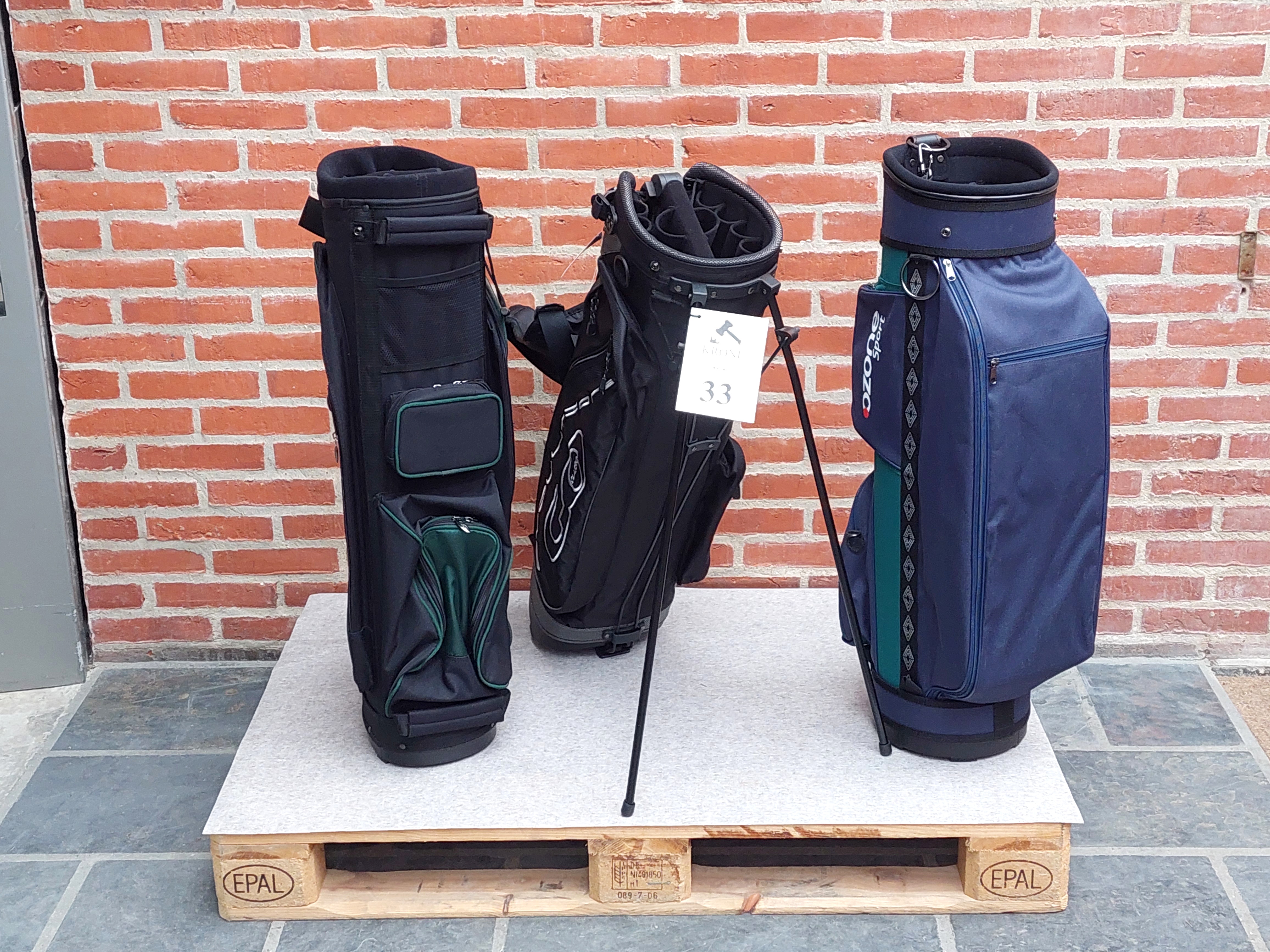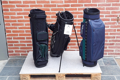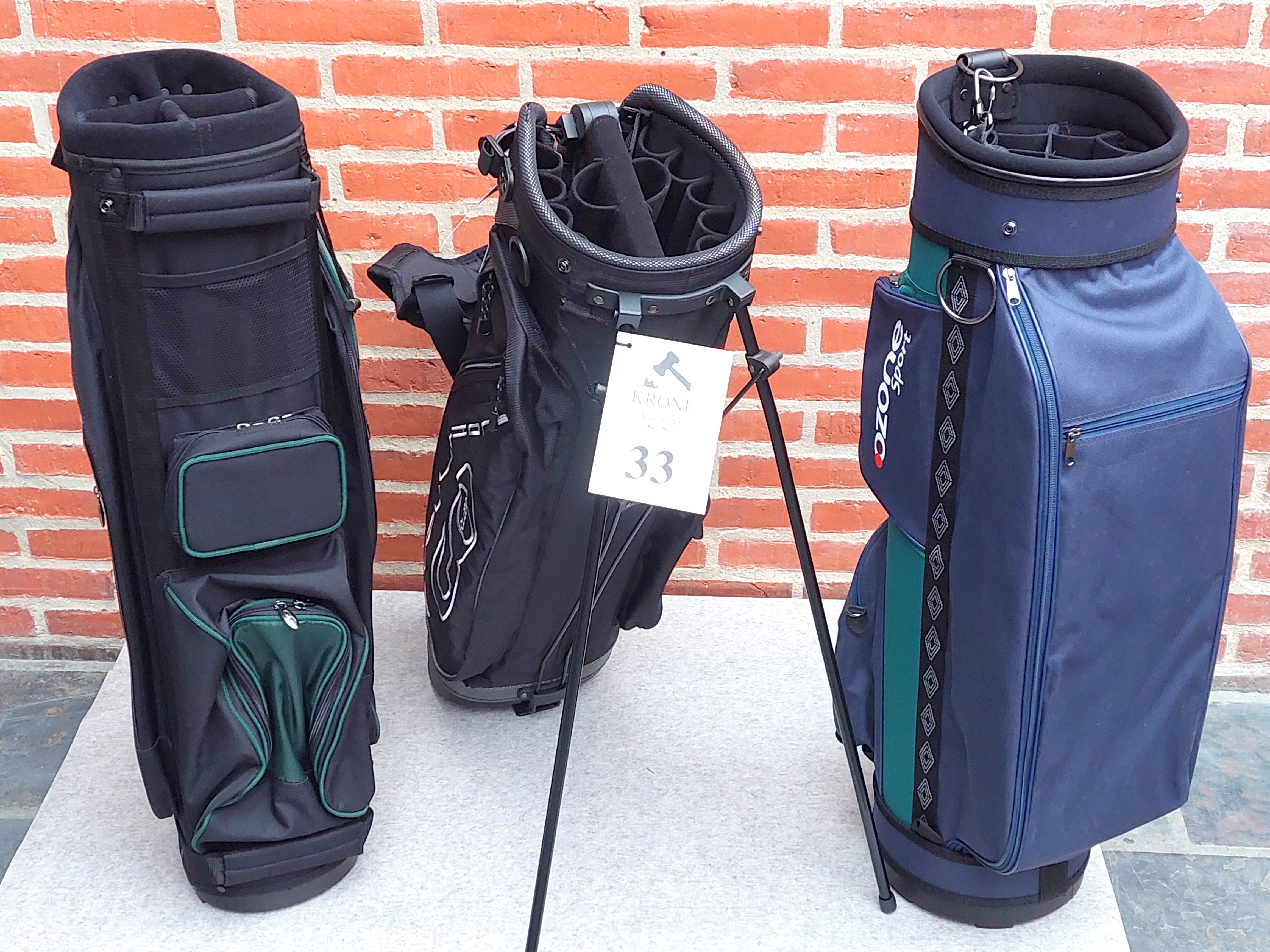 #33 3 stk Golfbags (med rem). Heraf 1 stk med pop-ud stativ. ubrugte.