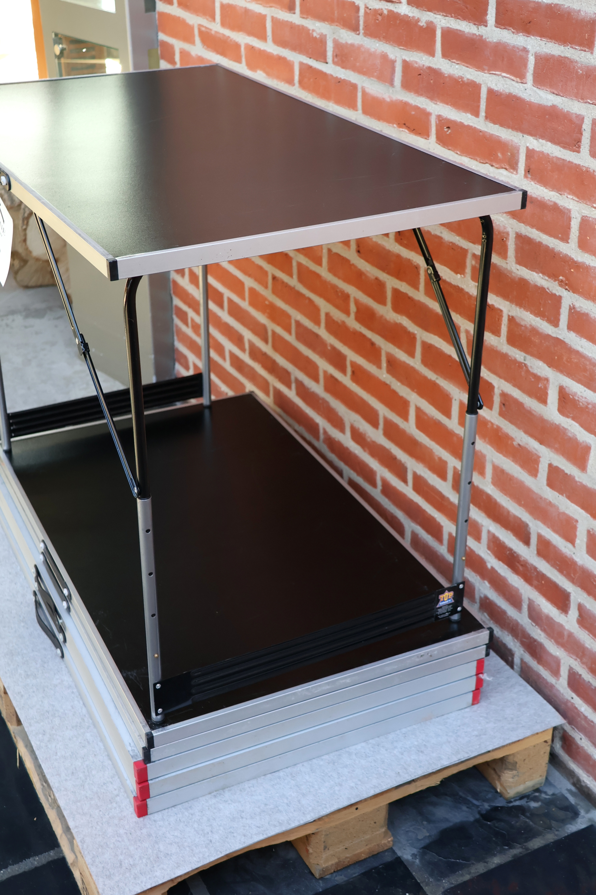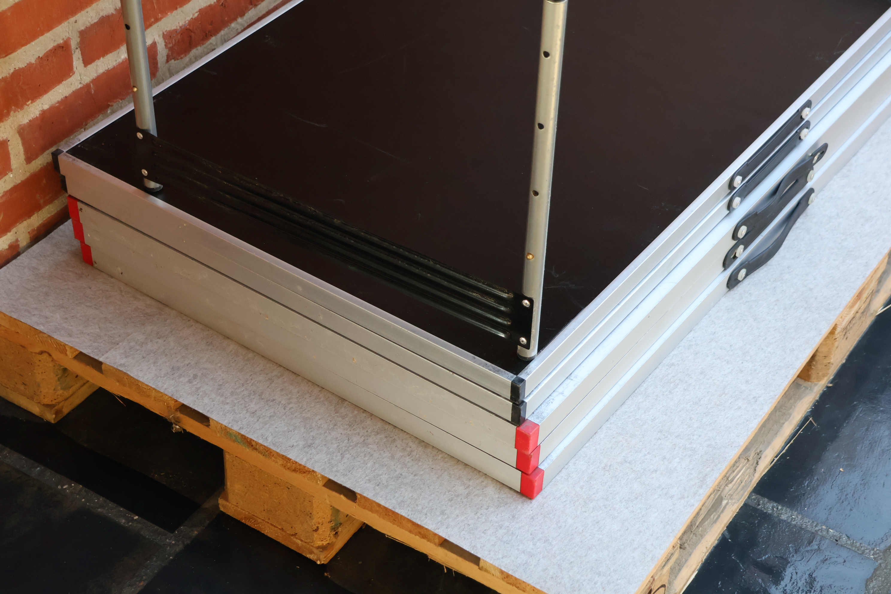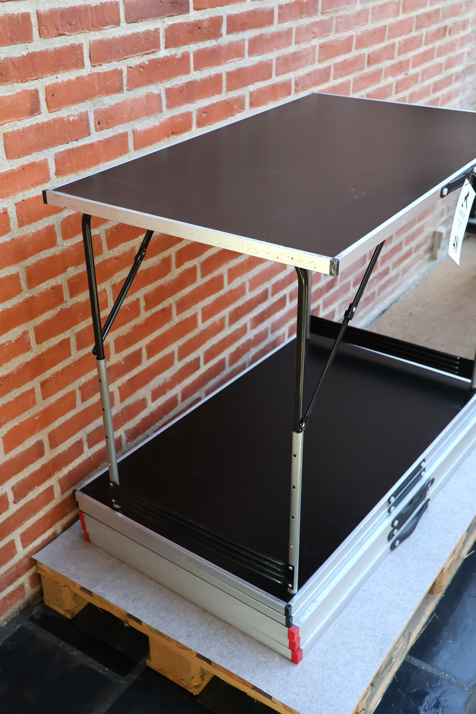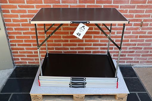 #48 6 Stk Alu klapborde 100*60cm, 3 stk m/sort plader og 3 stk m/hvide plader, fremstår m/brugsspor. MOMSFRI.