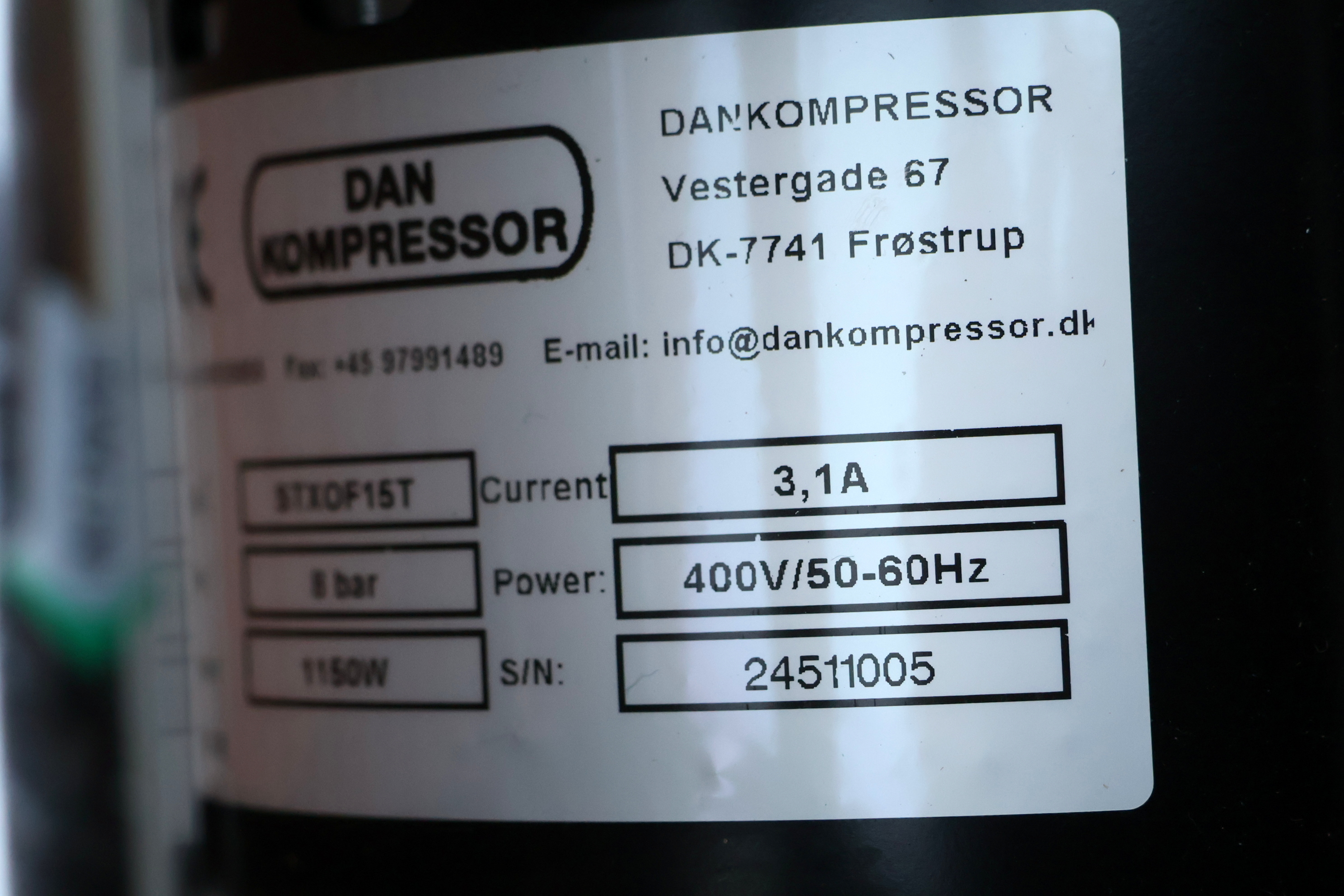 #16 Dan kompressor model STXOF15T oliefri, 8bar, 400v 1150w. ubrugt.