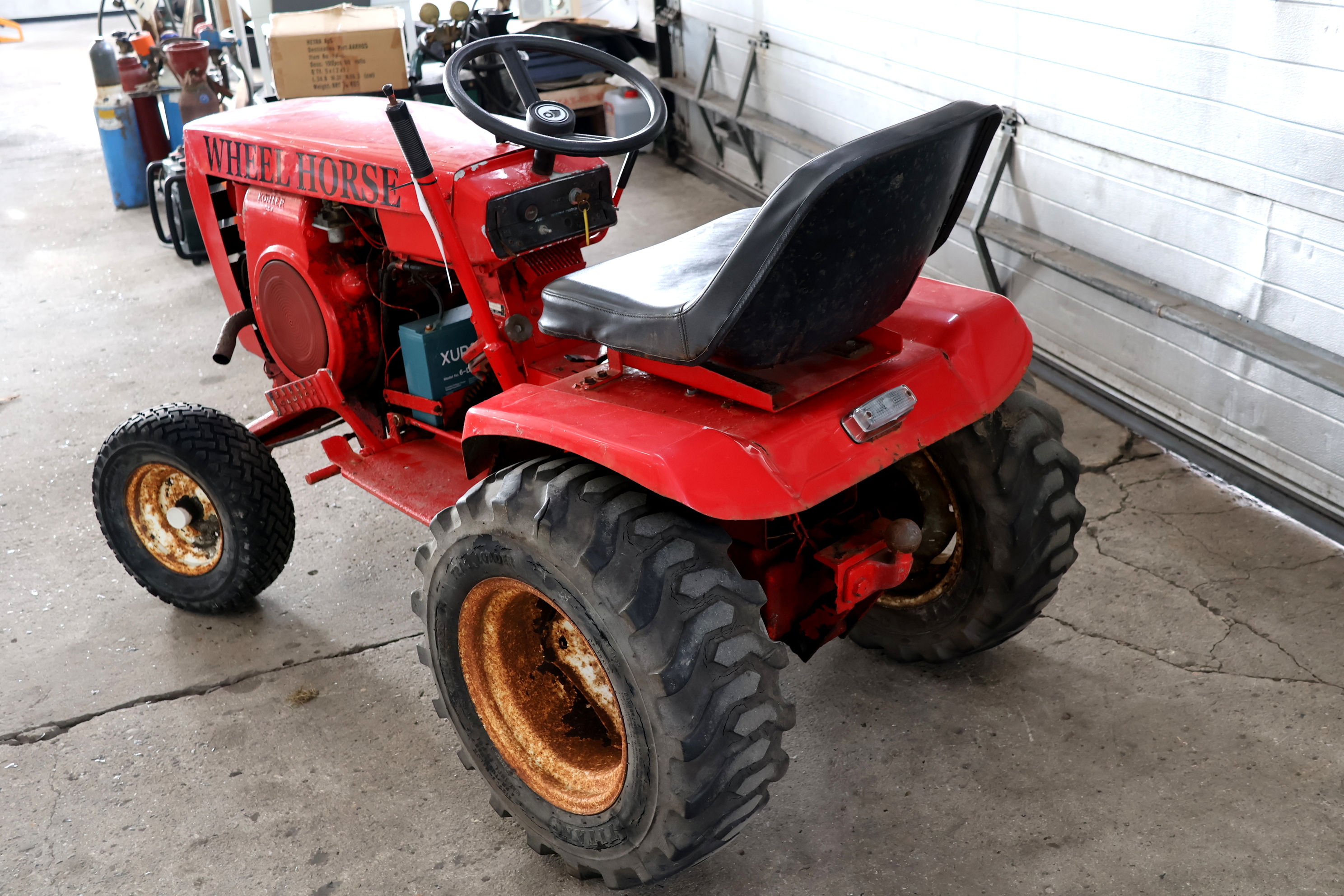 #245 Wheel Horse havetraktor model 61-12K8 m/12hk Köhler motor, 3 gear frem og 1 bak + høj/lav gear, afprøvet starter og kører, tændingslås fremstår m/defekt. MOMSFRI.