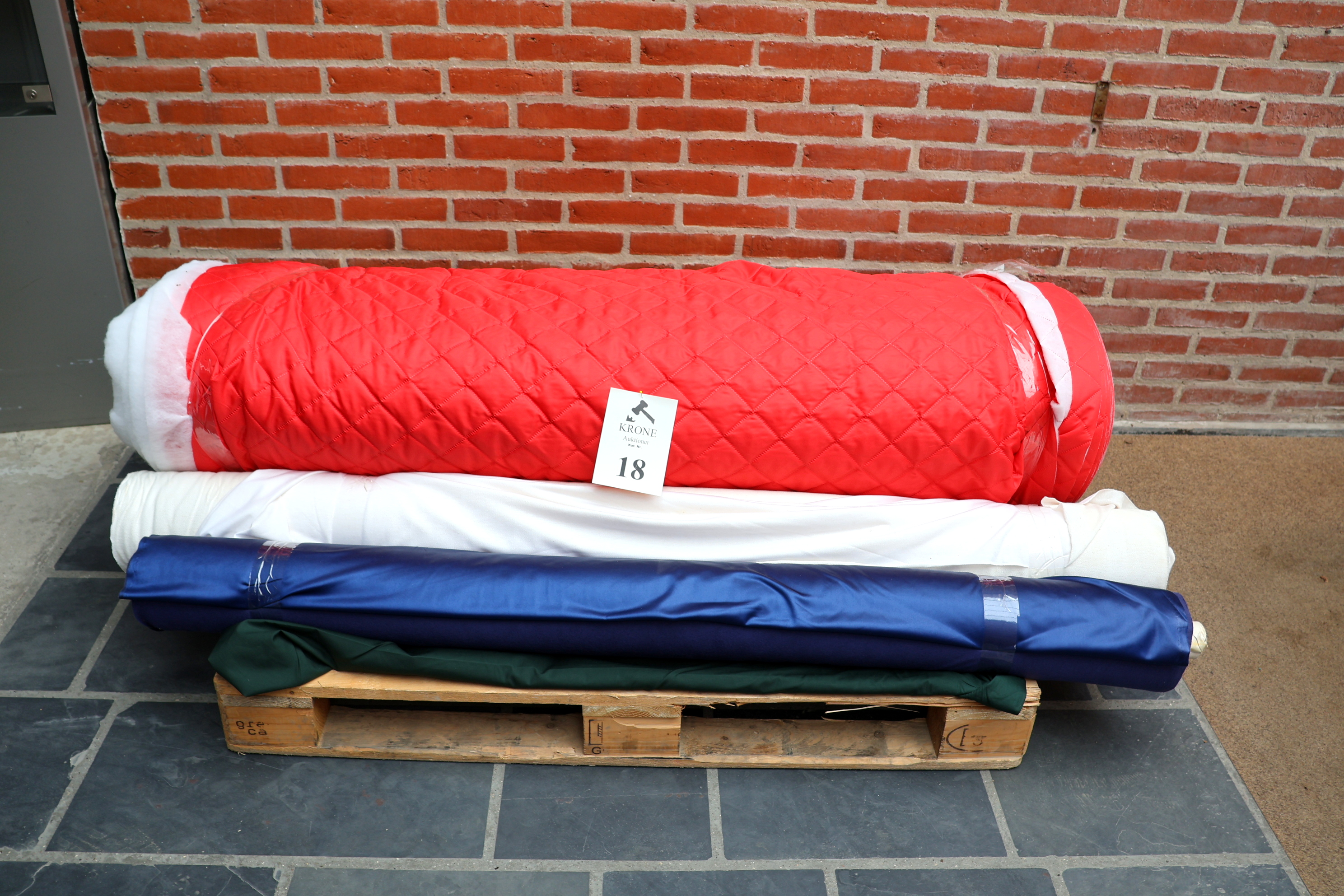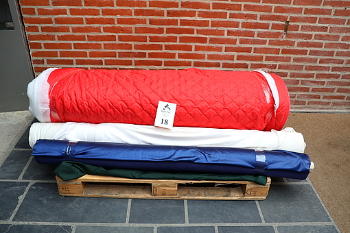 Auktion over Stof fra tekstil virksomhed Del 2. Auktionen begynder at lukke søndag d 5/4. mellem kl 20:00 og 20:30. Østergade 65. Hal A. 9560 Hadsund. Udlevering tirsdag og onsdag d 7.-8./4. kl 10-18.