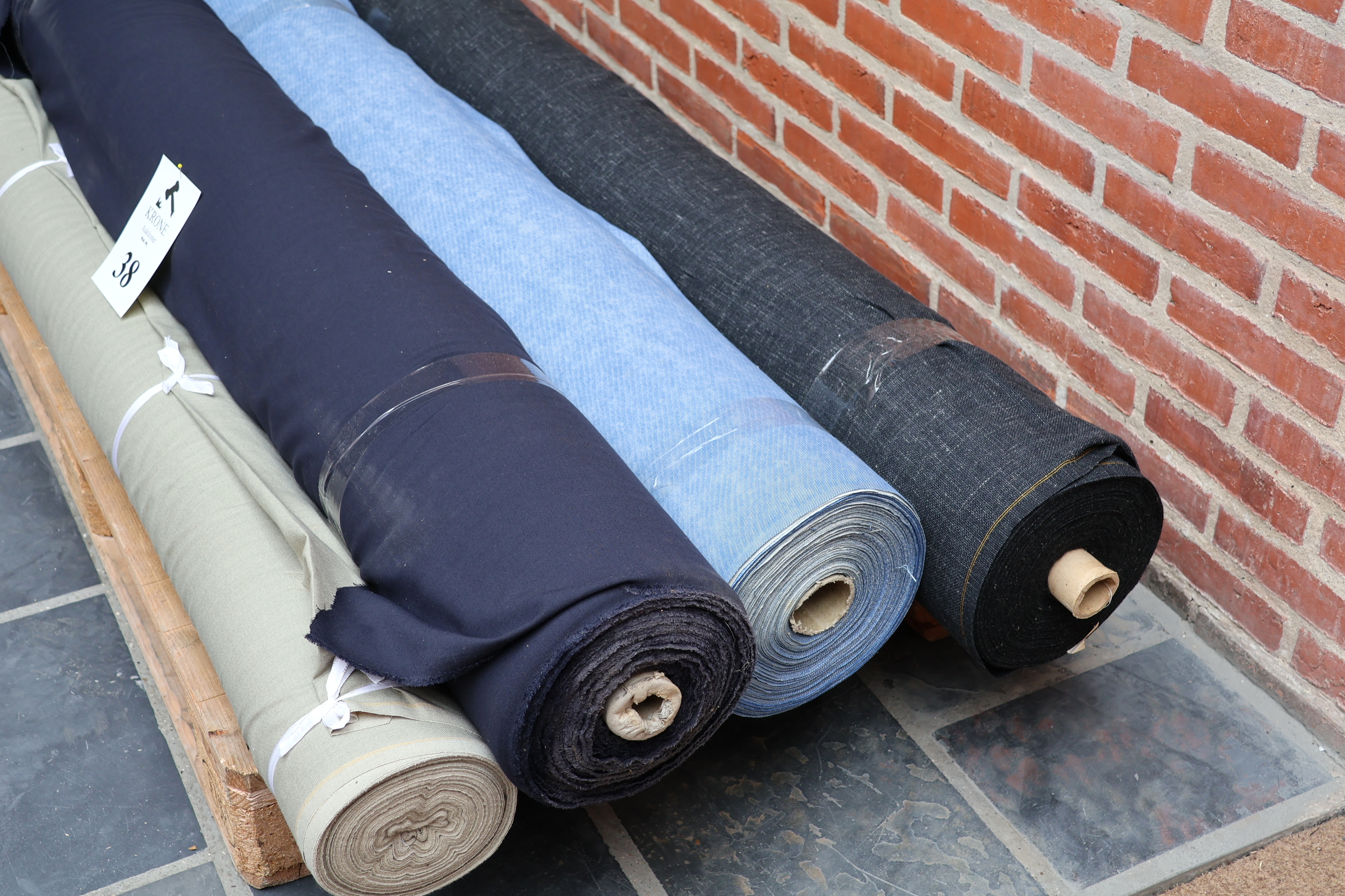 #38 4 Ruller Stof, fra tekstil virksomhed. B ca 150-155 cm.