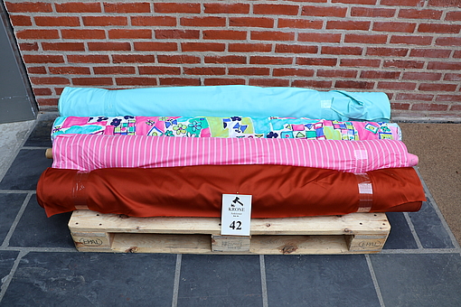 Auktion over Stof fra tekstil virksomhed Del 2. Auktionen begynder at lukke søndag d 5/4. mellem kl 20:00 og 20:30. Østergade 65. Hal A. 9560 Hadsund. Udlevering tirsdag og onsdag d 7.-8./4. kl 10-18.