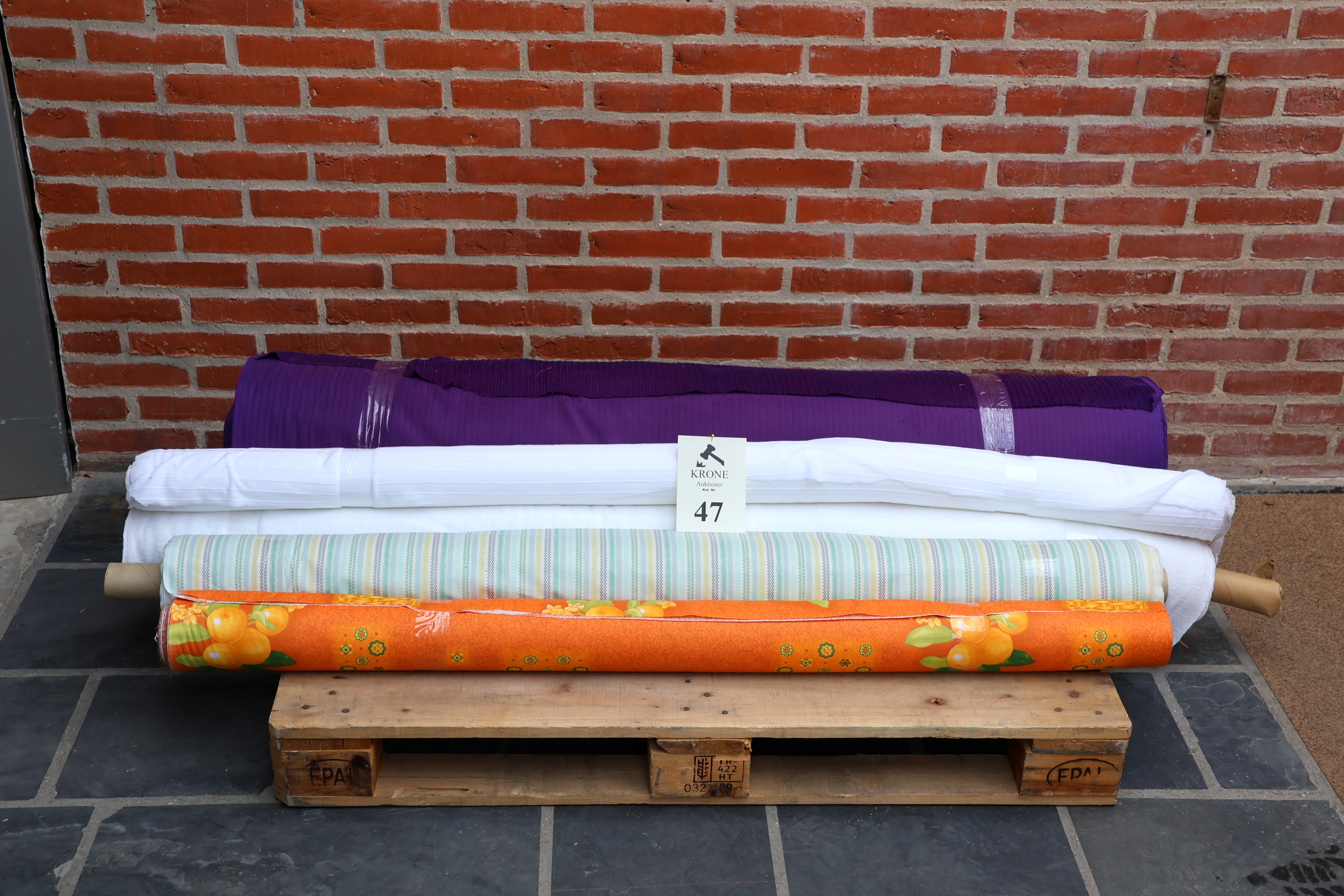 Tilbage til oversigt Auktion over Stof fra tekstil virksomhed Del 2. Auktionen begynder at lukke søndag d 5/4. mellem kl 20:00 og 20:30. Østergade 65. Hal A. 9560 Hadsund. Udlevering tirsdag og onsdag d 7.-8./4. kl 10-18.