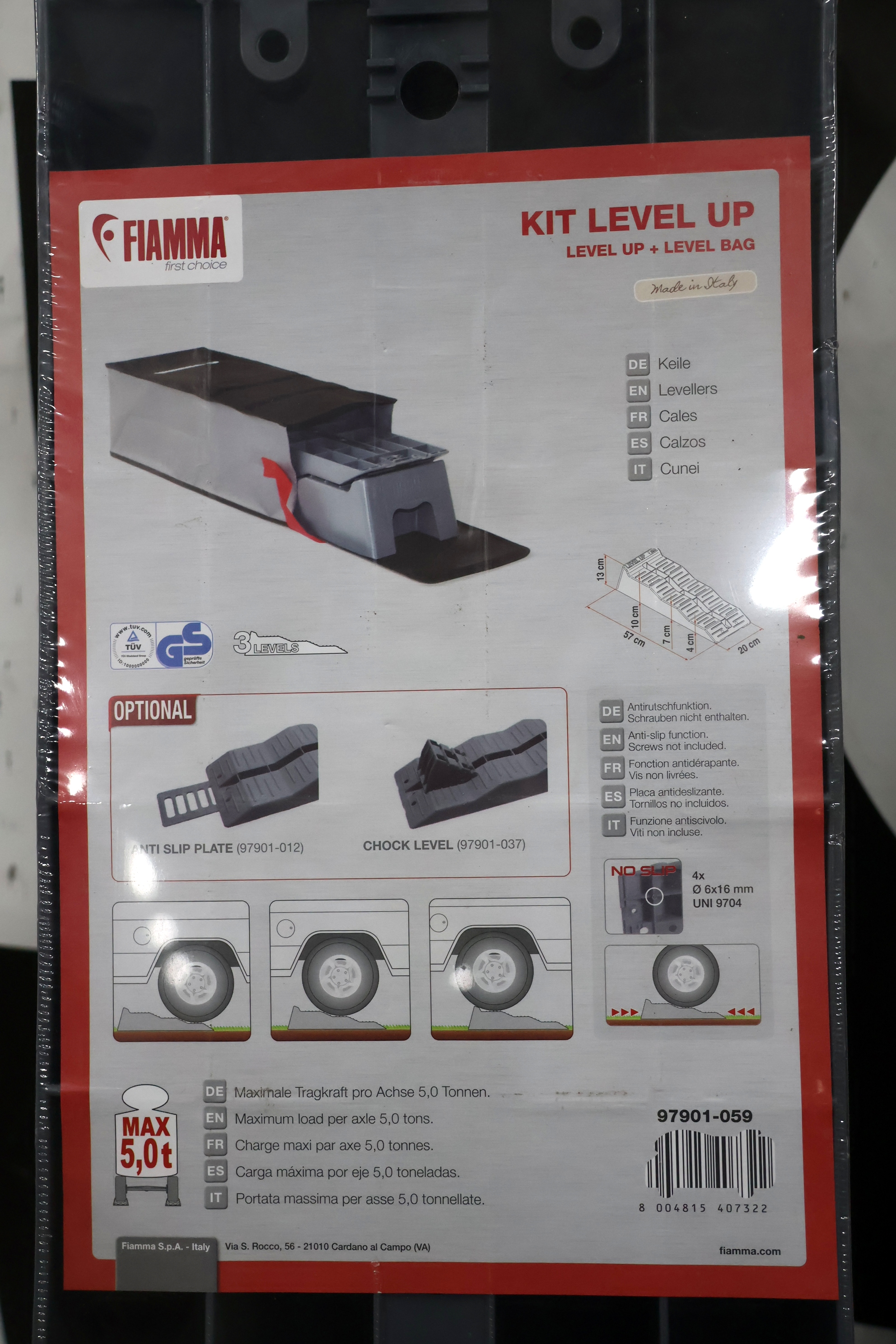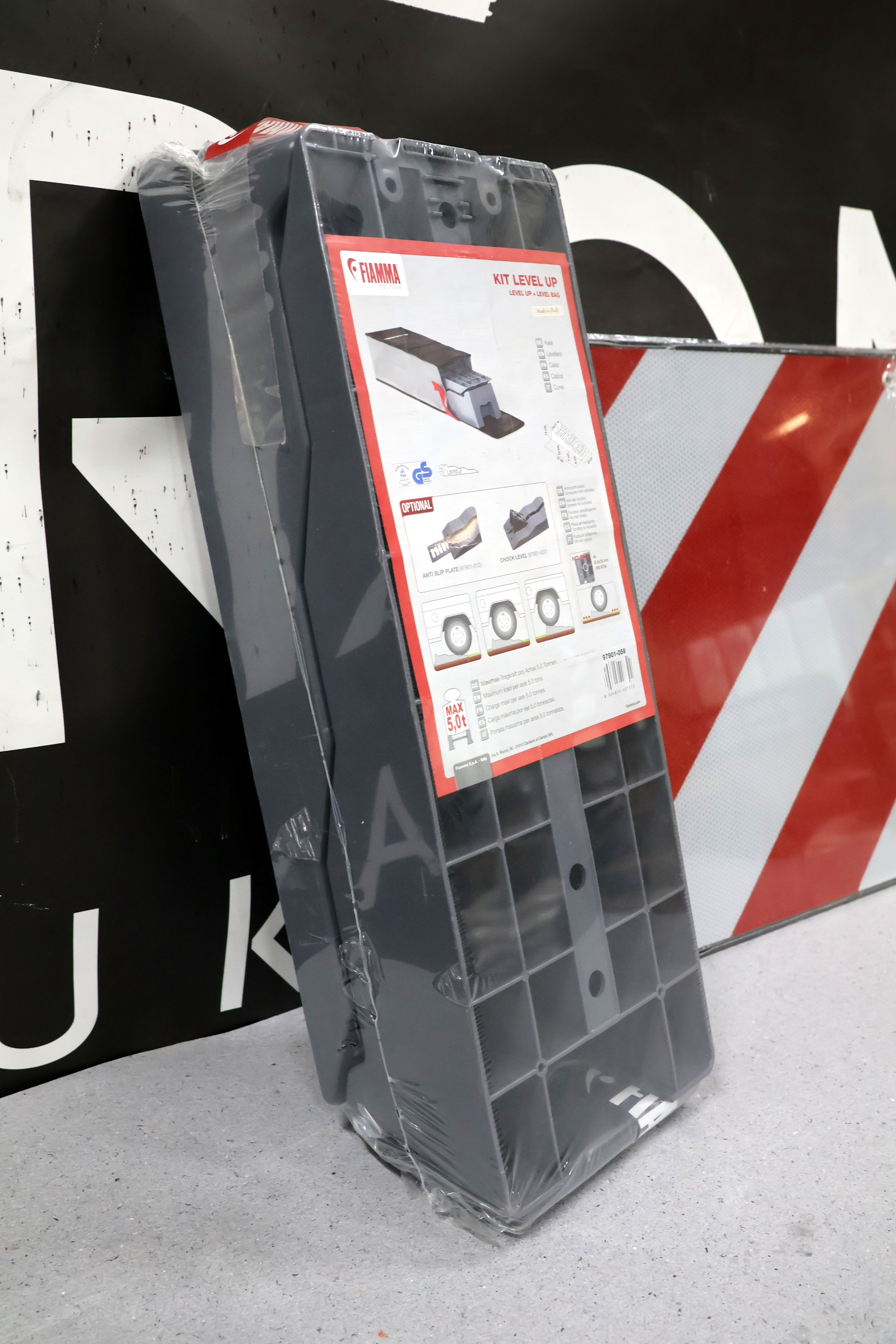 #10 Fiamma level up kit m/taske max 5tons + advarselsskilt i aluminium 50*50cm, ubrugt.
