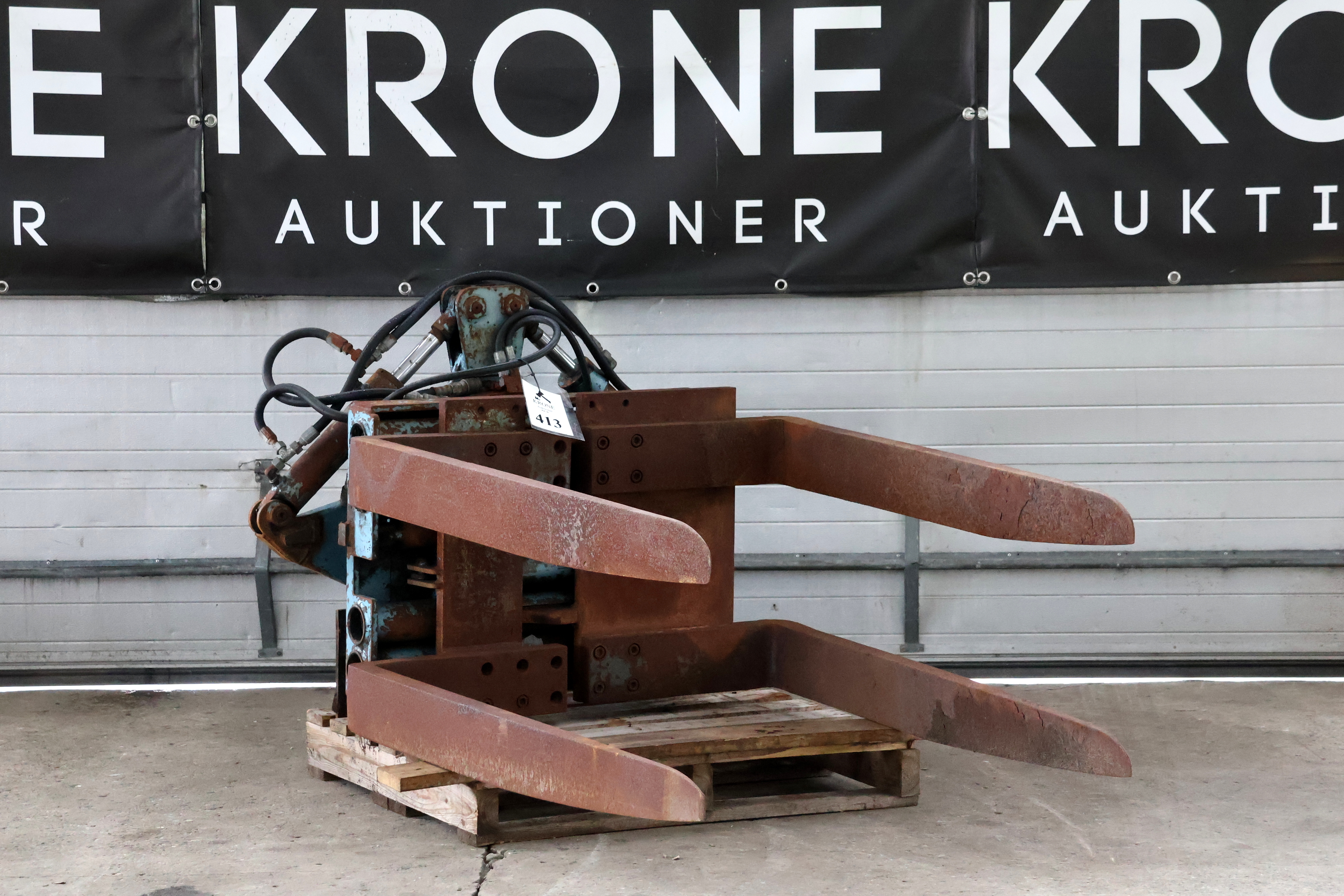 #413 Kassevender/pallegafler med rotator, gafler L 140cm B 15cm. m/truck ophæng.