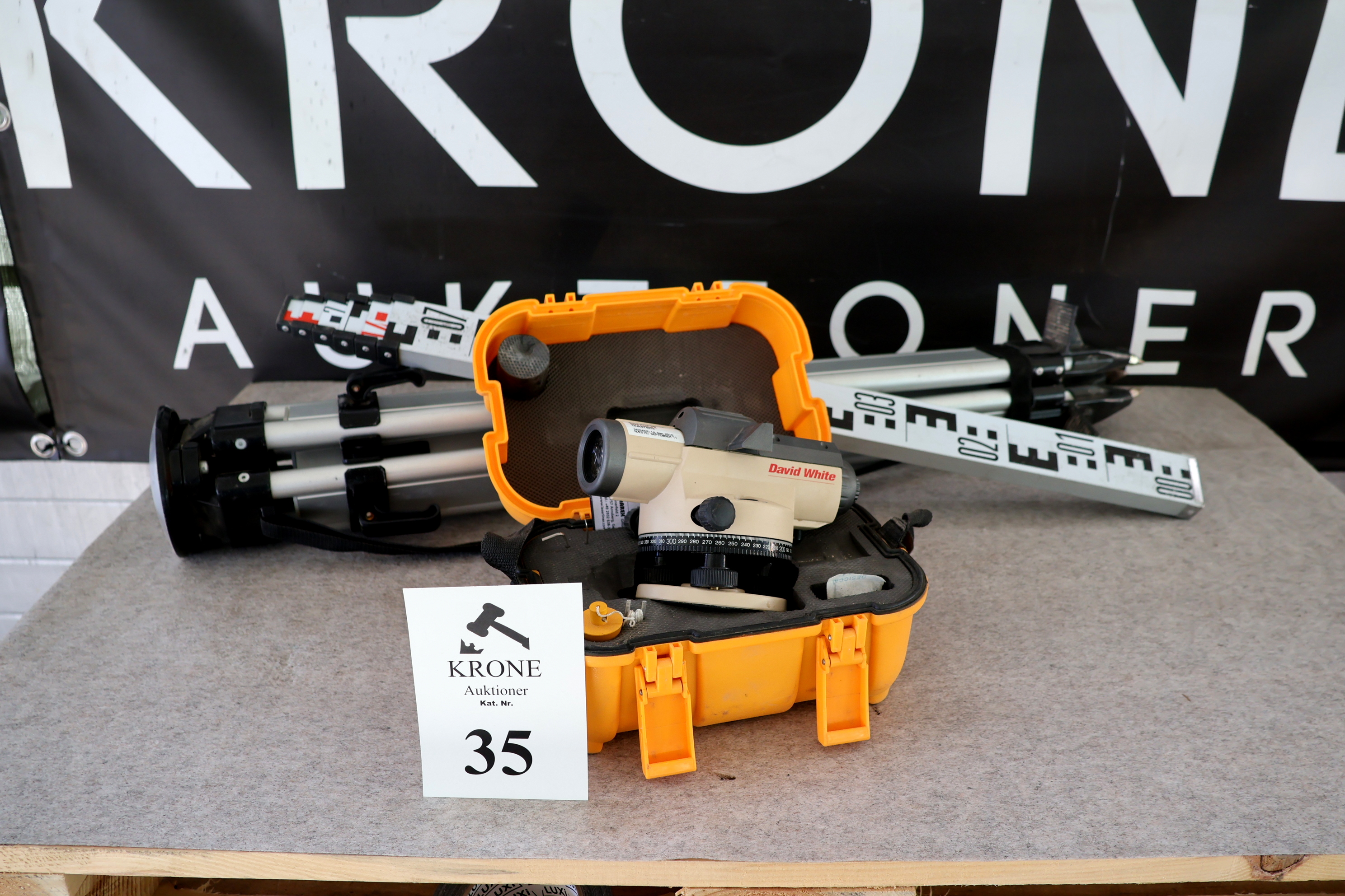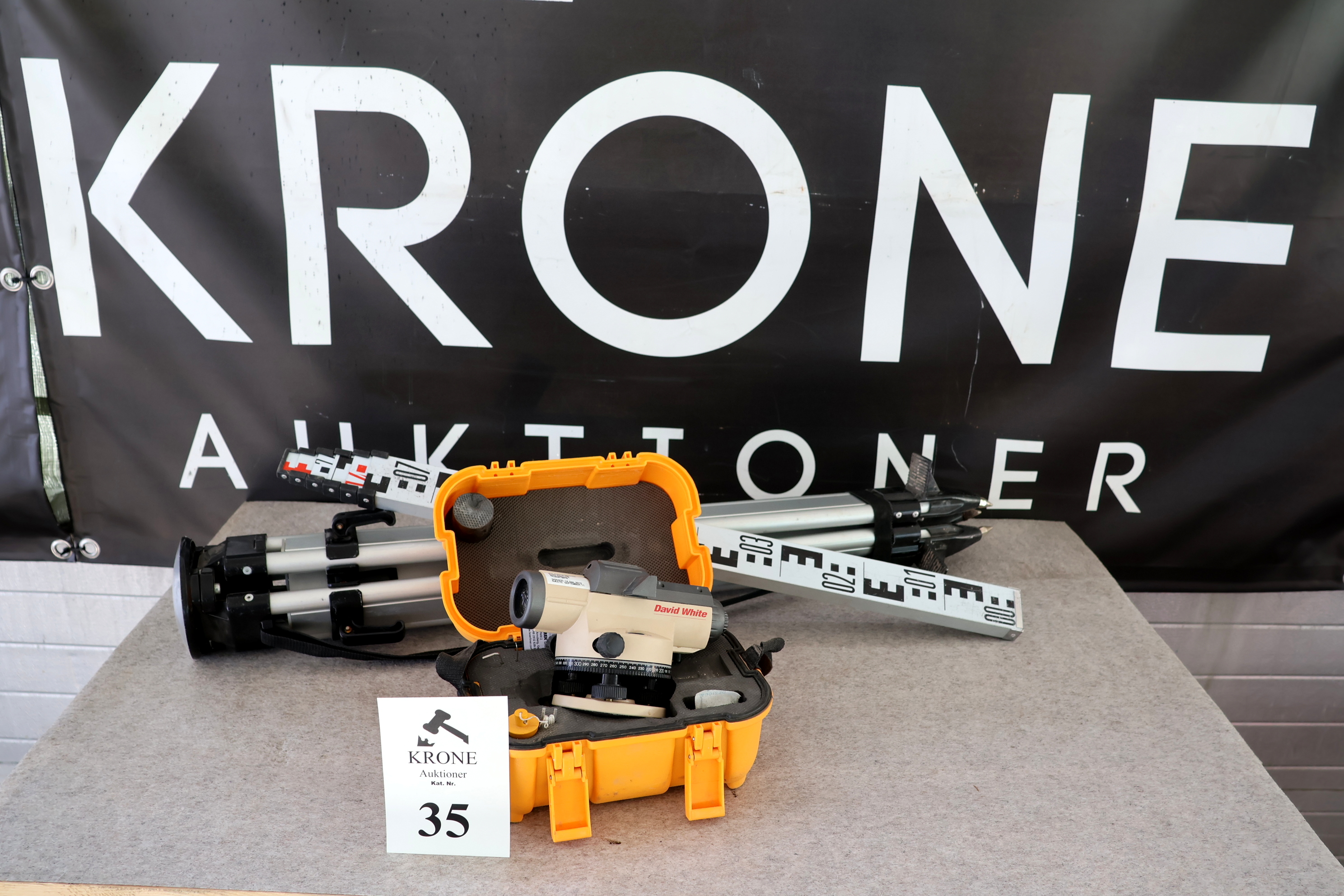 #35 Nivelleringinstrument David White AL8-26 m/3 fod og målestang.