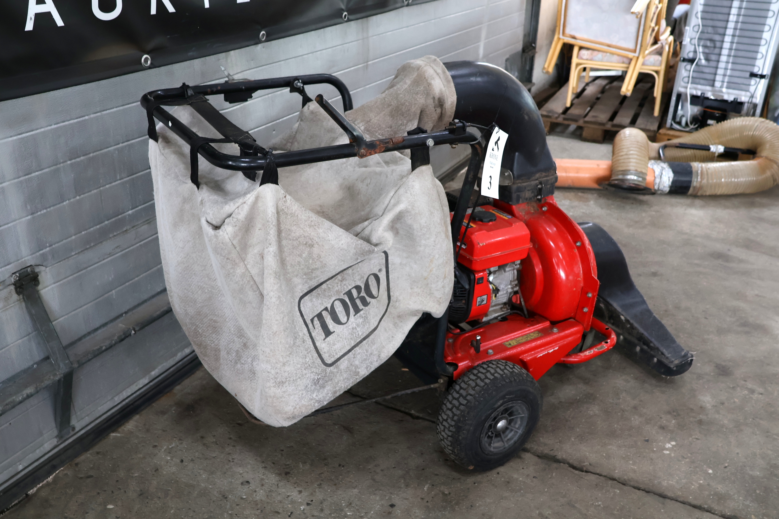 #3 Toro selvkørende løvsuger m/benzin motor, mundstykke og sugeslange, afprøvet ok. MOMSFRI.