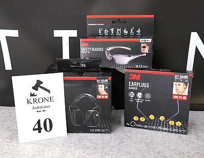 40. 3M Høreværn, sikkerhedsbriller…