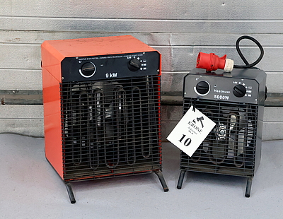 10. 2 Stk Varmeblæsere 9 og 5kw,…