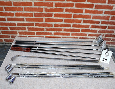 28. 10 Stk Golfkøller og jern. Heraf…