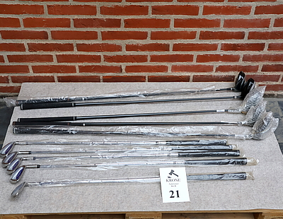 21. 10 Stk Golfkøller og jern. Heraf…