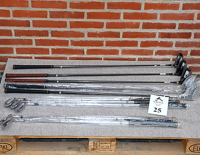 25. 10 Stk Golfkøller og jern. Heraf…
